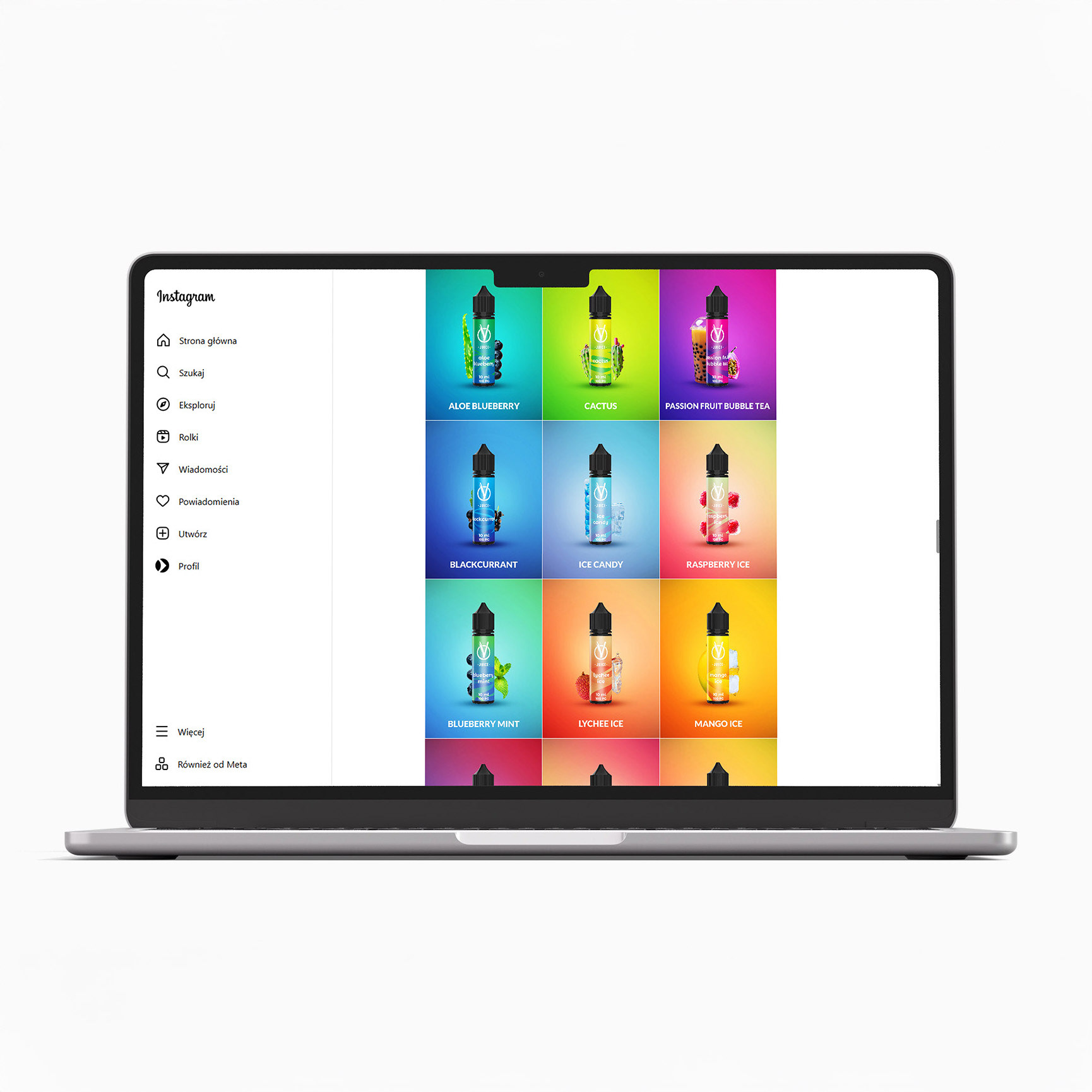 Z racji, że w czasie, gdy zaczynaliśmy współpracę, marka ta miała już pewien styl, postanowiłem, że trochę go podrasuję i poprawię część błędów. Postawiłem więc na spójność. W każdej z prac trzymałem się tej samej typografii. Kolorystyka, z uwagi na dużą ilość produktów i wariantów, jest dość luźna, niemniej charakterystyczne gradienty dodały im więcej jednolitości. Proste kolaże/fotomanipulacje to również element wspólny dla wielu grafik promocyjnych w social mediach, ale także w materiałach reklamowych.