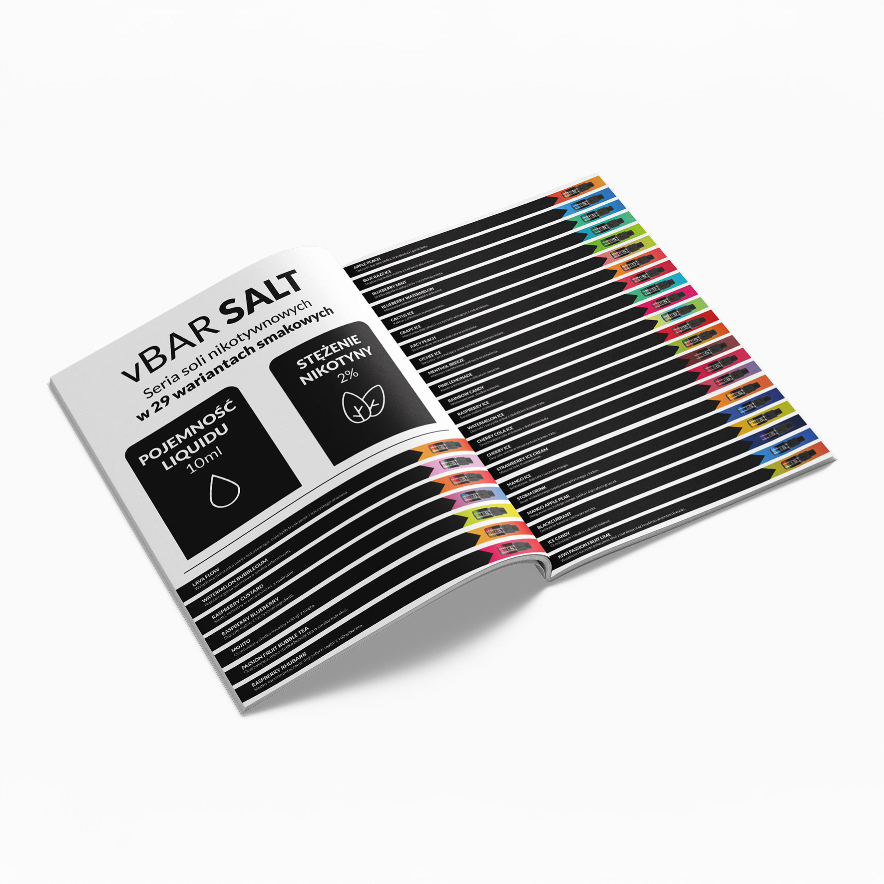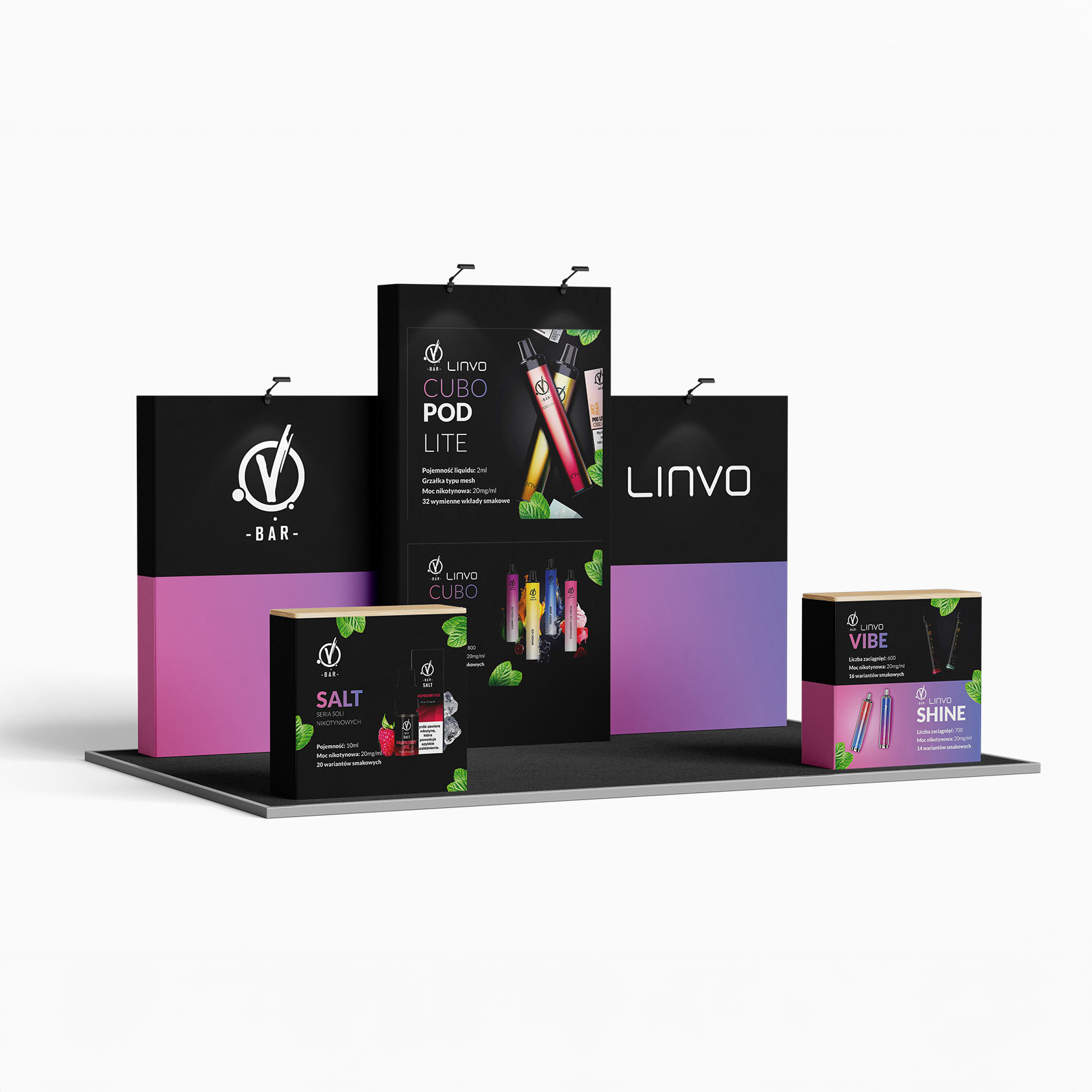 Marka vBAR to jedna z wiodących firm na rynku wyrobów nikotynowych w Polsce. Współpracuję z nimi od dawna i miałem spory wpływ na aktualny wygląd ich identyfikacji. Idea jest jasna – prosta typografia, dużo kolorów, gradienty i świeżość. Projektując rollupy, ulotki, katalogi, social media czy całe serie opakowań, stawiałem przede wszystkim na te elementy.