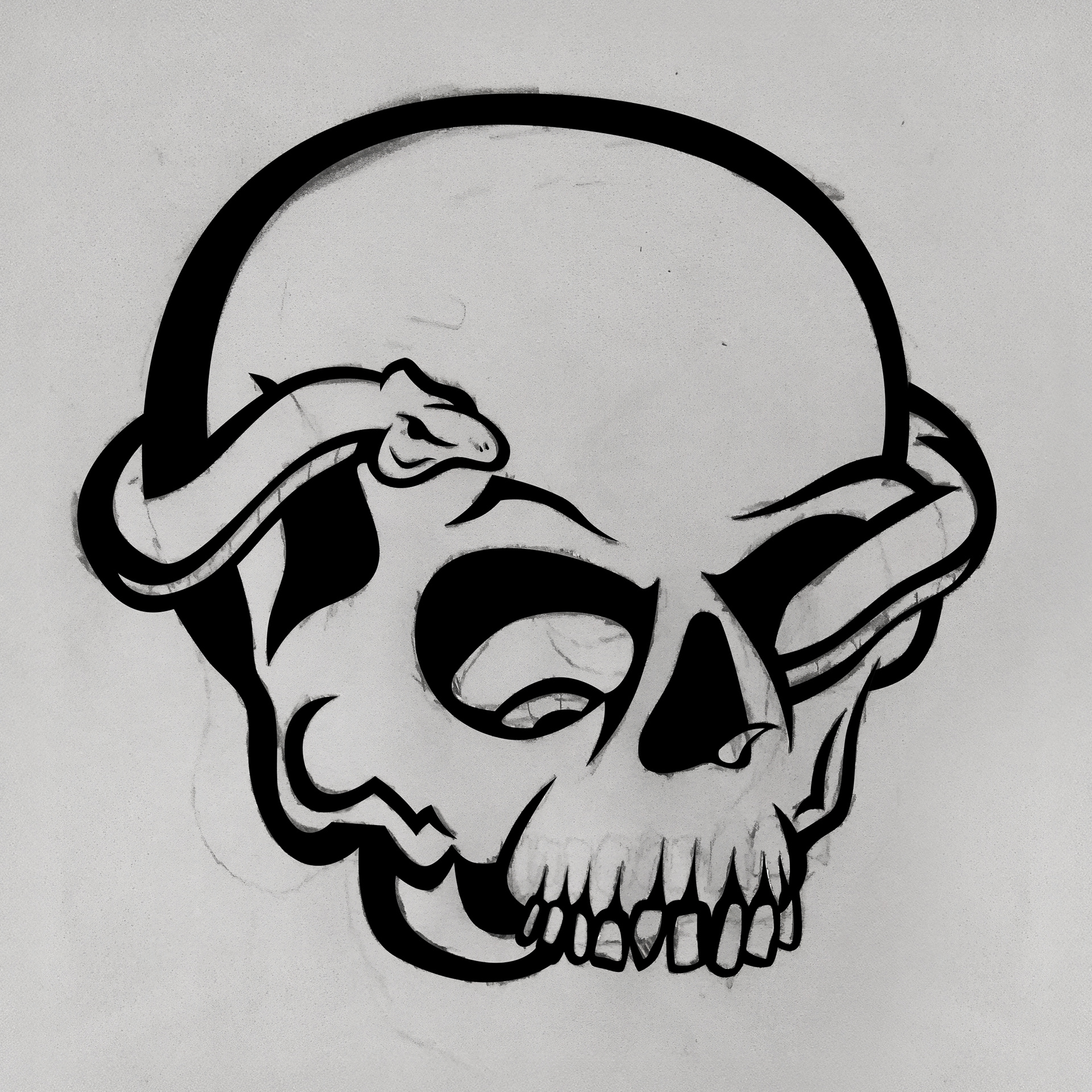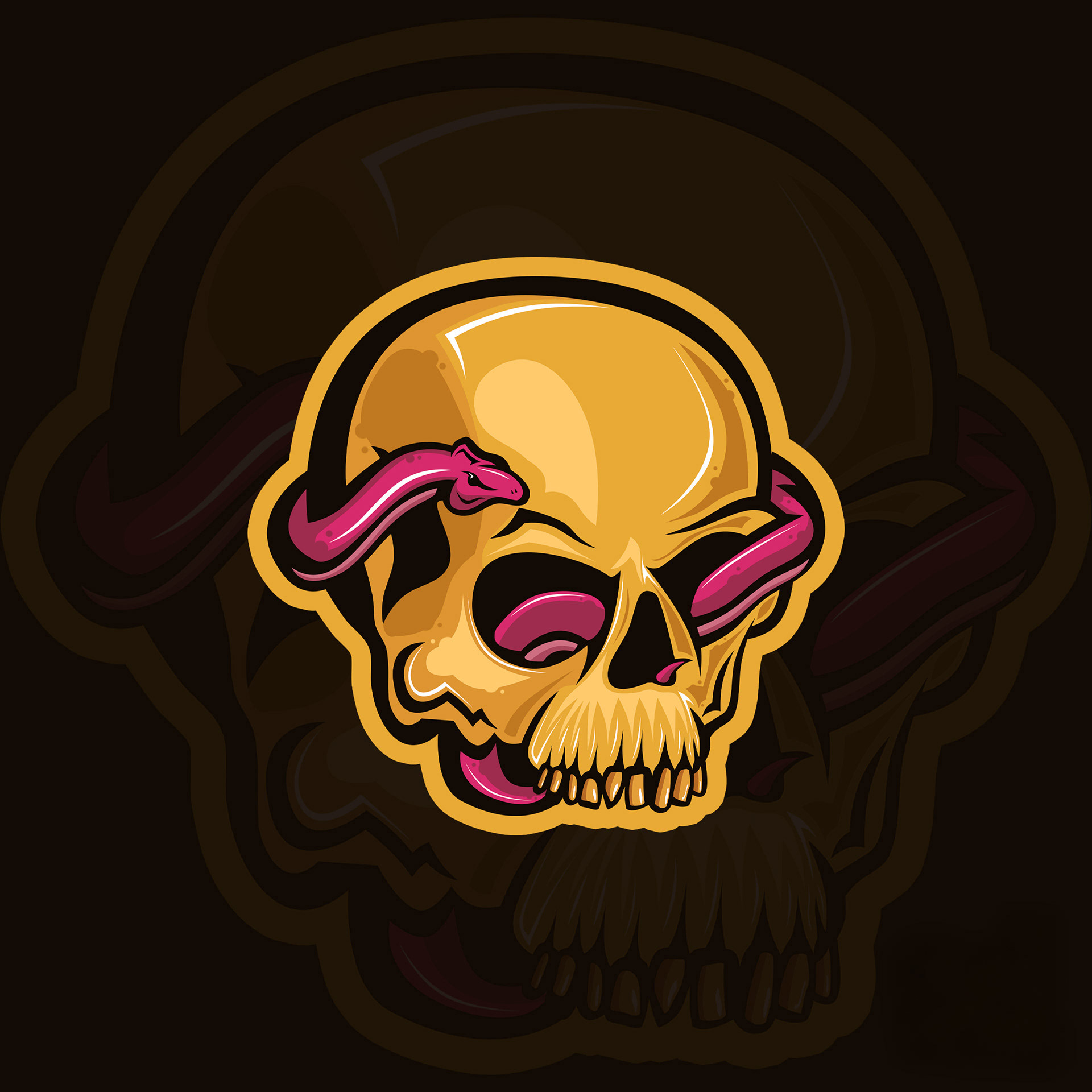 Oto jeden z moich projektów przedstawiających takie właśnie logo. Powstało ono w całości na bazie szkicu. Ilustracja przedstawia złotą czaszkę, z której wychodzi kontrastujący różowy wąż. Podrobiony outline, ostre cienie i światła nadają pracy specyficznej dla tego rodzaju logo stylistyki.
