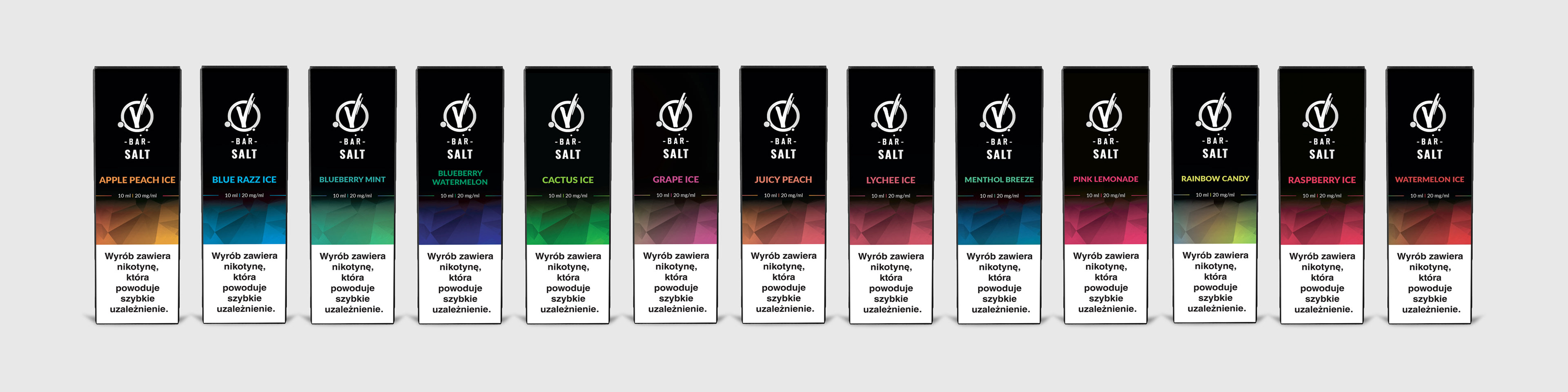 Projekt serii opakowań dla e-liquidów vBAR SALT był wyzwaniem polegającym na stworzeniu spójnego systemu wizualnego dla bardzo szerokiej gamy smaków, utrzymując przy tym silną rozpoznawalność marki. Sukces tego projektu przekroczył nasze oczekiwania, a linia vBAR SALT stała się jedną z najlepiej sprzedających się serii soli nikotynowych w Polsce.