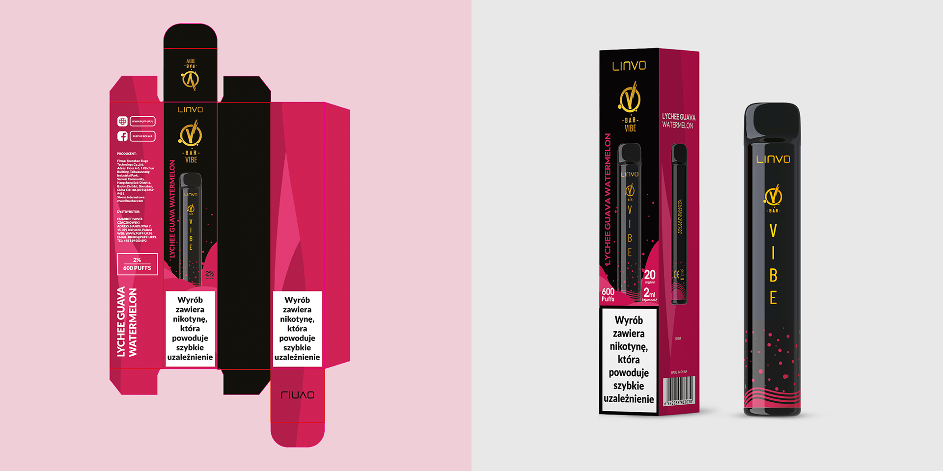 Projekt dla linii LINVO BAR VIBE to przykład systemowego podejścia do brandingu dużej rodziny produktów. Moim celem było stworzenie przejrzystej architektury informacji, która przy kilkunastu różnych wariantach smakowych pozwoli na szybką identyfikację i zachowa spójny, nowoczesny look na półce.