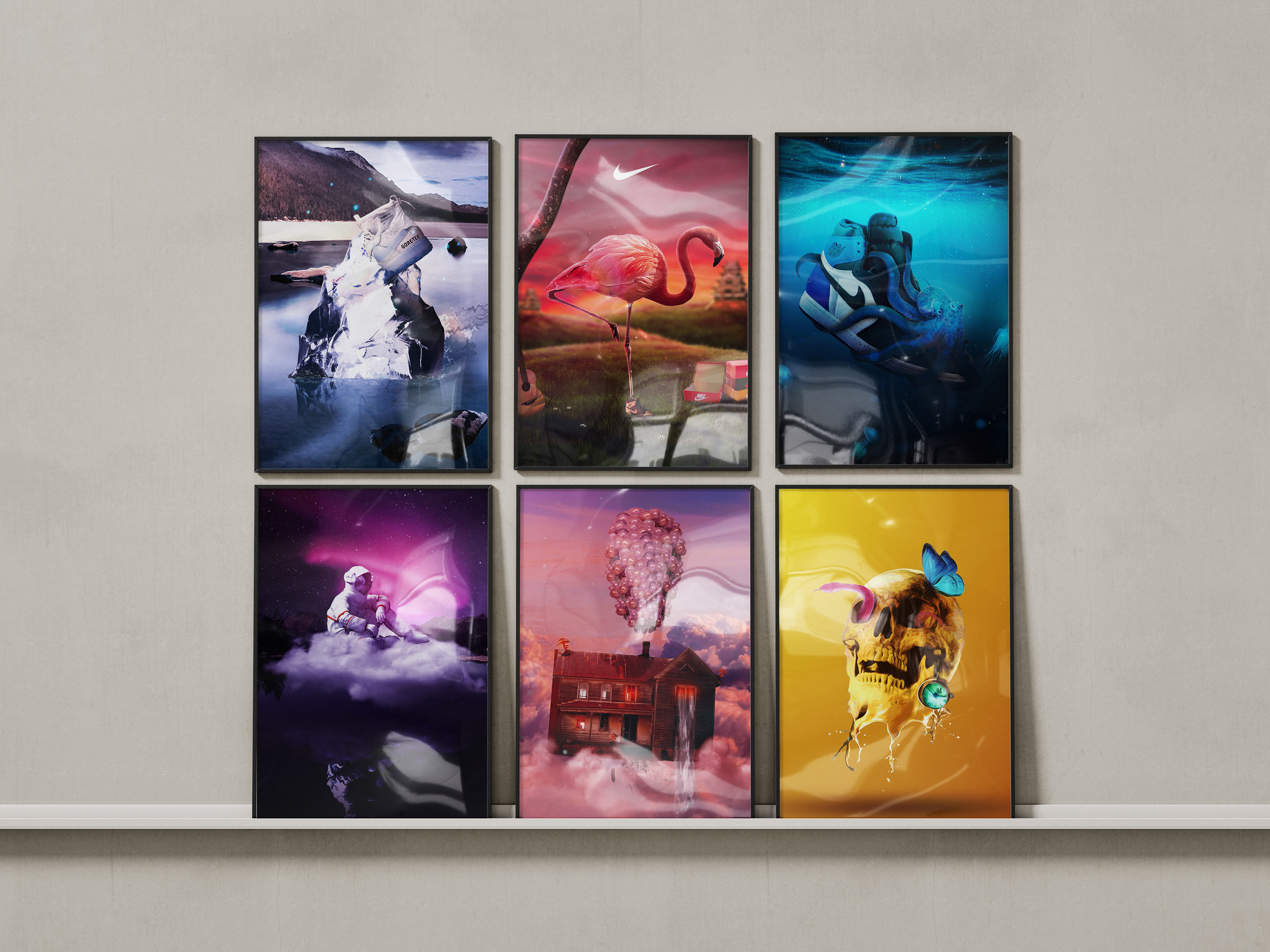 Przykłady fotomanipulacji zawierających symbolikę, alegorie lub czytelne nawiązania do marek. Prace miały być przede wszystkim efektowne wizualnie. Wszystkie z nich zostały wykonane cyfrowo poprzez kolaż i ręczne dopasowanie, bez wykorzystania sztucznej inteligencji.