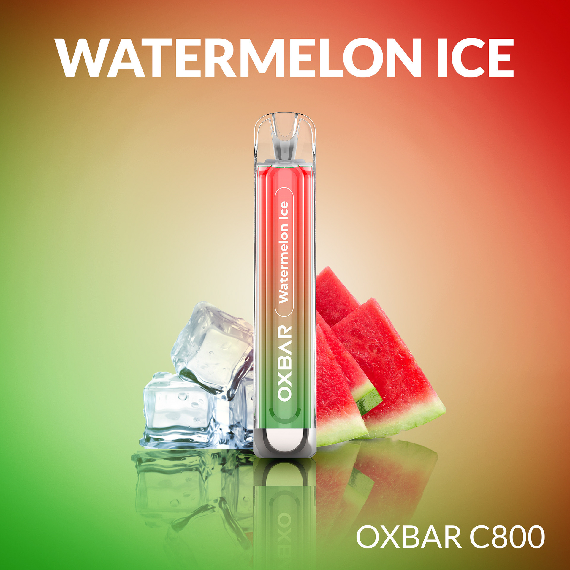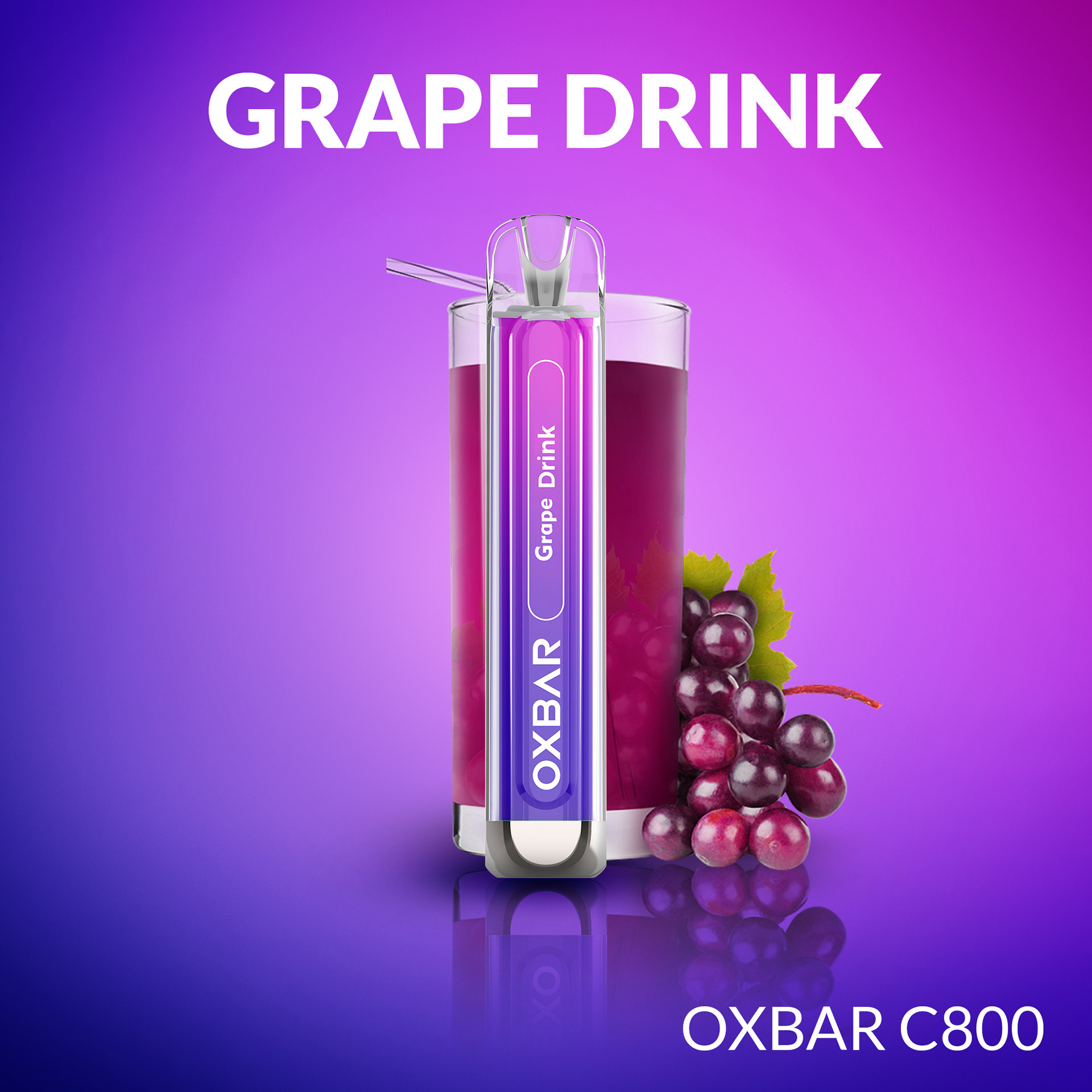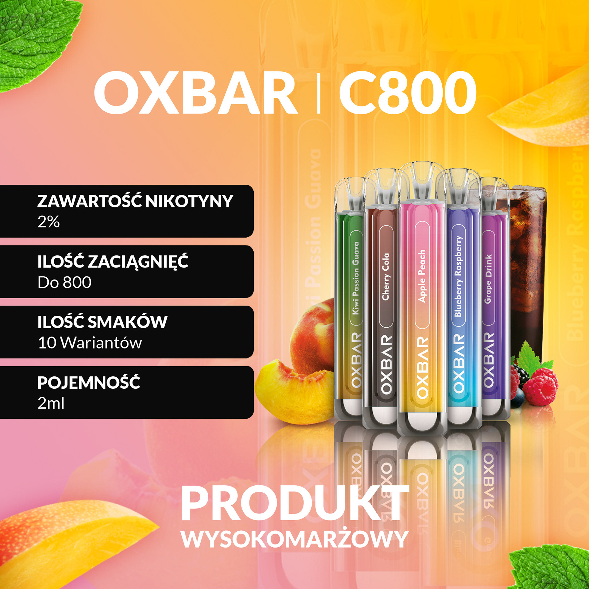 Przykłady grafik promujących urządzenie OXBAR C800 oraz jego warianty smakowe.