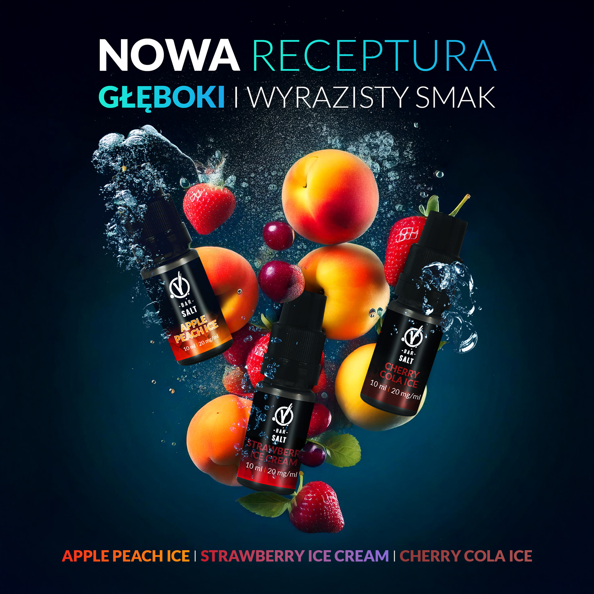 Oto przykłady postów promujących produkty vJUICE CORE oraz vBAR Salt. Zestawienie to obrazuje różnicę stylistyczną między kolorowym i żywiołowym postem z lewej strony oraz niemal naturalistycznym z prawej. Stylistyka postów została dobrana tak, aby pokazać charakter i różnice między produktami.
